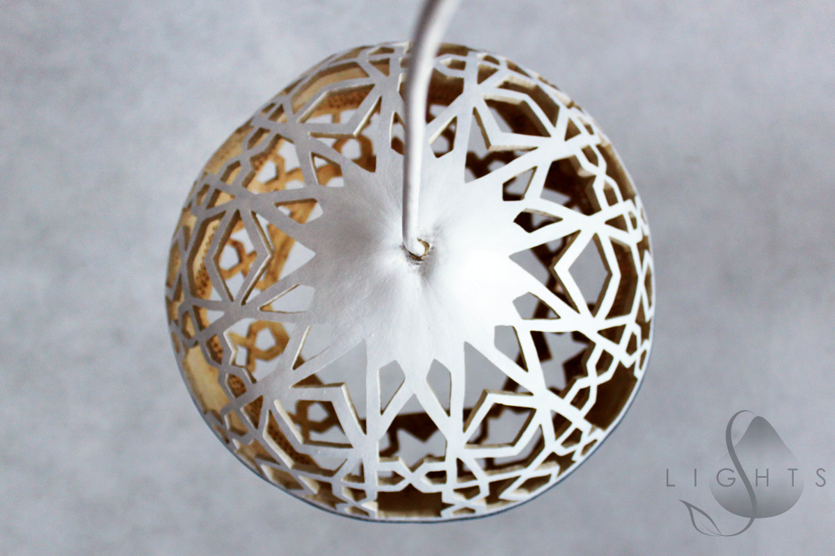 Nie wiercone, a wycinane wzory! Efekt tego poczynania to wyraźny geometryczny wzór wyświetlający się na ścianach. Przy tak ażurowych wycięciach wszystko musi być wykonane na "porządnej" tykwie, czyli bardzo twardej i grubej. To również niesie ze sobą kolejne konsekwencje, a mianowicie mnóstwo ciężkiej pracy. Wycinanki wcale nie są proste, to wymaga jeszcze większej precyzji i stabilności niż wiercenie... ale efekt... Efekt rekompensuje te wszystkie wysiłki!